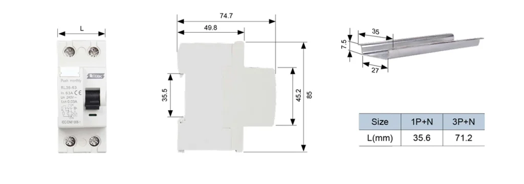| Rated residual operated current I△n | 0.03A, 0.1A, 0.3A |